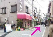 商店街を入って、すぐの分かれ道(お花屋さんが右手)を右に進みます。